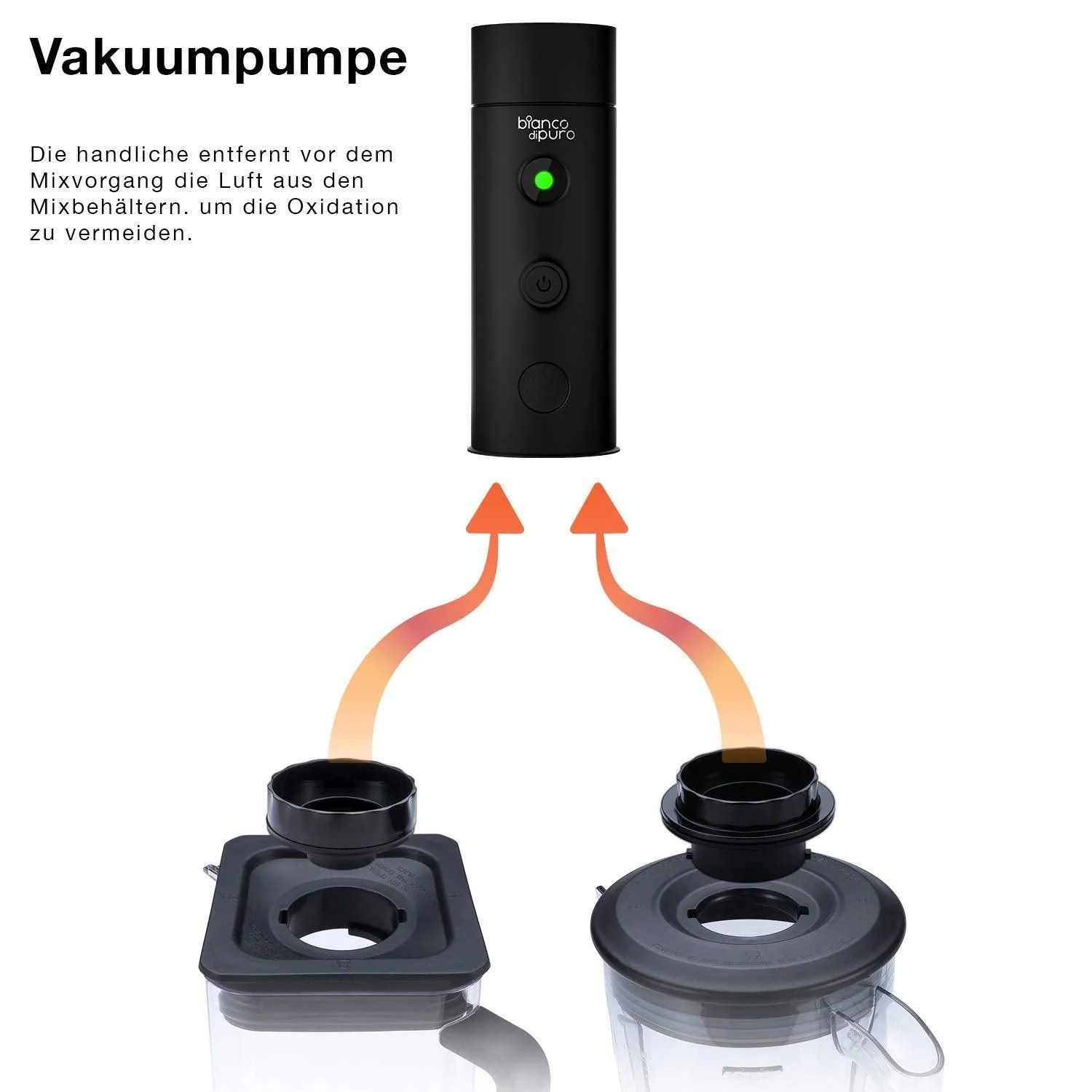Bewahren Sie die volle Vitalität Ihrer Smoothies und Saucen. Die VAKUUMPUMPE VPS01 entzieht dem Mixbehälter vor dem Mixvorgang den Sauerstoff und verhindert so die Oxidation empfindlicher Vitamine und Enzyme. Das Ergebnis: Intensivere Farben, ein homogeneres Mixergebnis ohne Schaumbildung und der volle Erhalt wertvoller Nährstoffe für Ihre bewusste Ernährung.